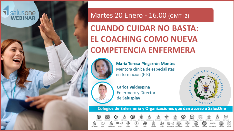 El Colegio Oficial de Enfermería de Melilla a través de SalusOne, te ofrece un Nuevo Webinar CONOCIMIENTO 👉 CUANDO CUIDAR NO BASTA. EL COACHING COMO NUEVA COMPETENCIA